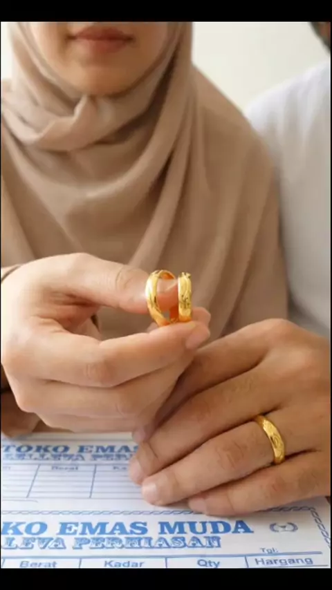 cincin couple polos simpel dilapisi dengan emas muda bersurat