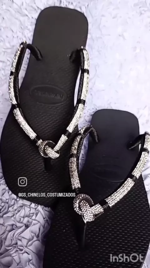 All black com strass🖤 Segui para ver mais! 🥰 #GS_CHINELOS_COSTUMIZADOS #havainas #strass #trabalhomanual