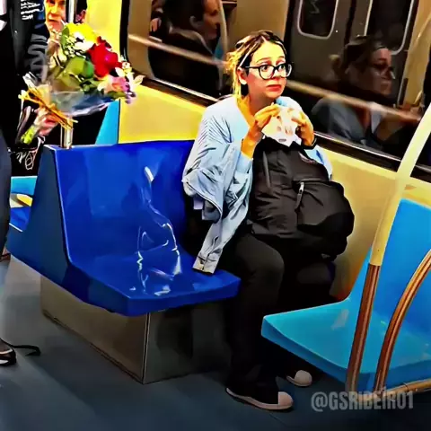 Menina se emociona ao receber flores no metrô #AmizadeBrasilChina #chapeudepalha #flores