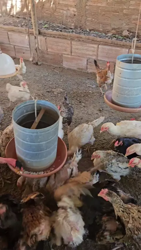 Alimentando as galinhas caipira