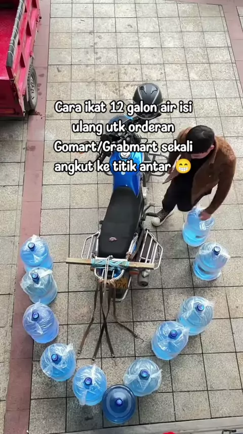 Cara ikat 12 galon air isi ulang utk orderan Gomart/Grabmart sekali angkut ke titik antar π