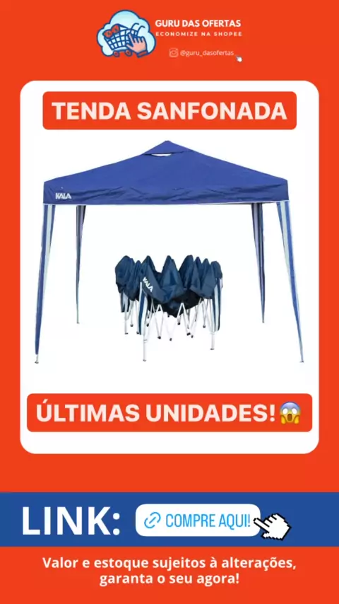 ⛺️😱⏳🛒🔥 Tenda Cabana Gazedo Alumínio Dobrável Bolsa Transporte Praia 3x3x2,5m Kala. Tenda Gazebo Dobrável Azul Kala A Tenda Gazebo Dobrável em Poliéster Azul 300x300cm Kala é um item essencial para quem busca praticidade e conforto em eventos ao ar livre. Com uma área ampla, é perfeita para proteger você e seus convidados do sol, graças ao seu material resistente em poliéster. Seu design dobrável facilita o transporte e armazenamento. #tenda #praia #viajar #ferias #shopee