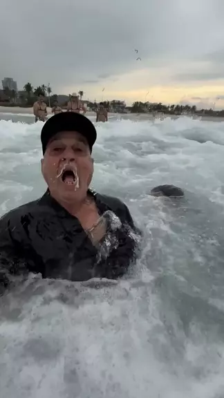 Levei o TiΓ£o pra conhecer a praia πππππ