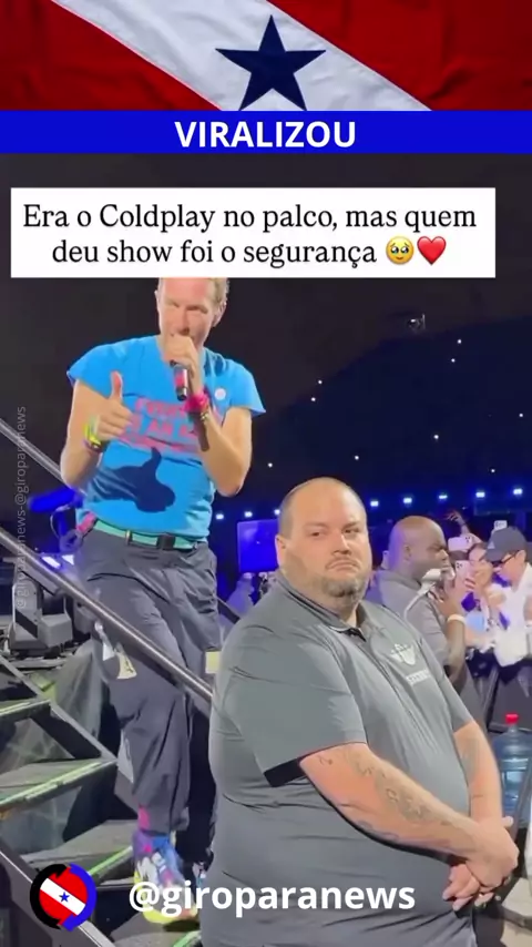 Imagina que sonho ter um momento assim no meio do trabalho ? Enquanto ganhava " Somenting Just Like Thais " . CRIS MARTINS convidou um dos seguranças pra dançar no palco. Era a apresentação do Coldplay . Mas quem deu um show não foi a banda. Para mais siga @giroparanews