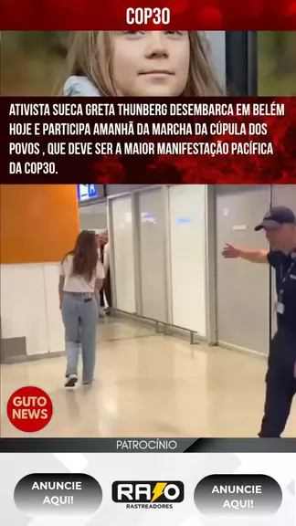 A ativista Sueca @gretathunberg desembarca em Belém hoje para participar amanhã da Marcha da Cúpula dos Povos , evento Paralelo da COP30. A marcha , que percorre as ruas da capital Paraense , deve ser a maior manifestação pacífica da Conferência , reunindo pautas como justiça climática , proteção da Amazônia e direito dos povos tradicionais. Para mais, siga @gutonews.pa Reprodução: Redes Sociais #Cop30 #Amazonia #Belem #BelemDoPara #Ativismo