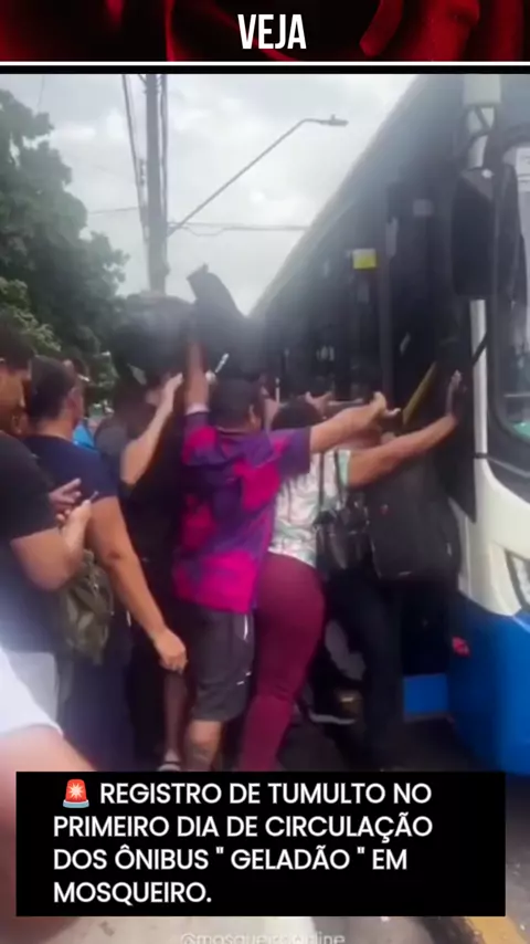 A chegada dos novos ônibus com ar-condicionado, conhecidos como “Geladão”, provocou confusão na manhã desta segunda-feira, em Mosqueiro. Imagens divulgadas nas redes sociais mostram passageiros se empurrando e disputando espaço para entrar nos veículos durante a estreia do serviço. Para mais, siga @gutonews.br Reprodução: Redes Sociais