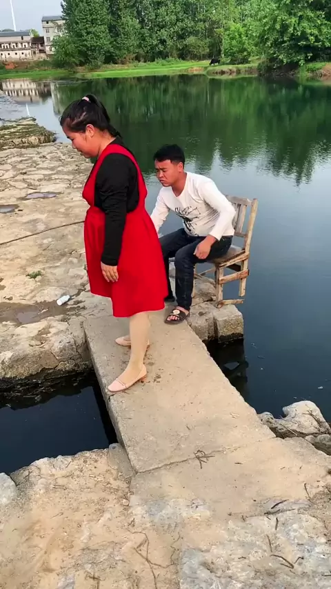 Memancing lucu, jatuh ke air mewah # Happy Day # Fancy drop water # Tempat yang bagus untuk pamer pegunungan dan perairan hijau