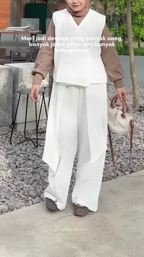 Mari kita jadi dewasa yang kaya raya itu🤎 #outfitideas #onesetlozyhijab