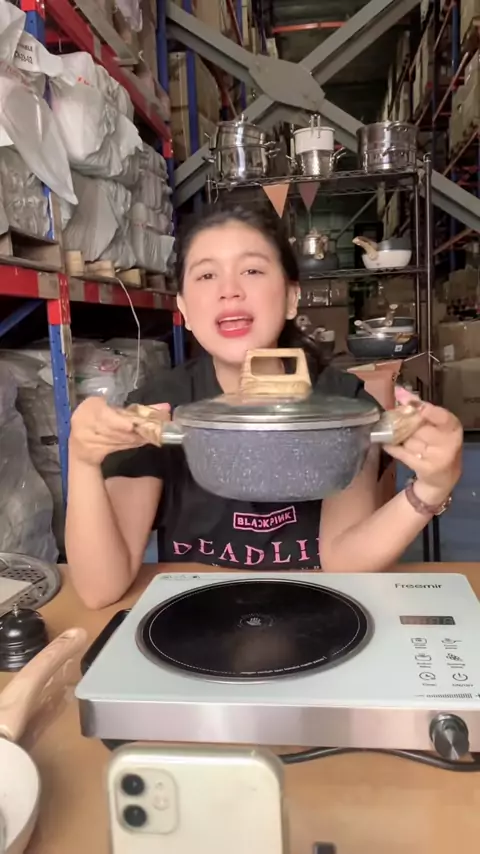 panci soup 20cm bahan granit buat bikin makanan sehari hari cocok yaa. udah ada tutup kaca semi presto spesial join live cece#freemir#wajanantilengket#freemirindonesia#pancisoup
