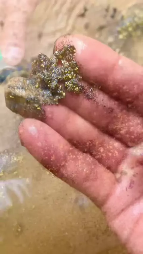 Gold in black sand Gold in a rock mortar#blacksand # viralvideochallenge#videoviral