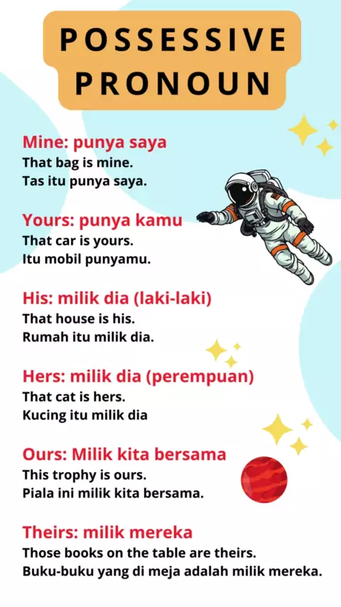Possesive Pronoun: mine, yours, his, hers, ours, theirs contoh kalimat dan artinya#children#ungkapanbahasainggris#englishconversation#vocabulary#kosakatabahasainggris#lesbahasainggris#listeningpractice#bahasainggrispemula#dailyconversations#conversationpractice#belajarbahasainggris#pronoun#grammar#possesivepronouns