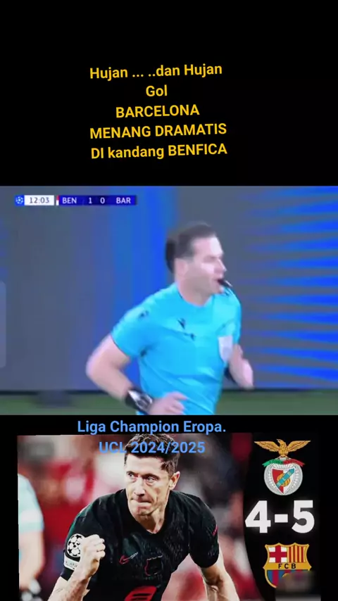 HUJAN GOL DI BENFICA .Lanjutan UCL 2024/2025. Barcelona Menang Dramatis #ligachampions #uefachampionsleague #barcelona #sporolahragasepakbola #salahorang