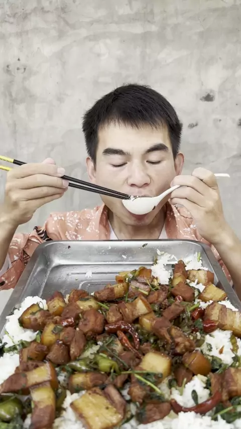 Daging babi yang direbus terlalu lezat dengan nasi RMB, lemak tapi tidak muak, dan manis lezat ##mukbang More