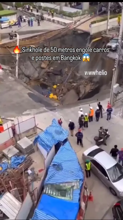 #hélioferreira Impressionante 😱 Um sinkhole de 50 metros de profundidade abriu perto de um hospital em Bangkok nesta quarta-feira, engolindo carros e postes de energia ⚡🚗. Comutadores ficaram chocados e houve resposta de emergência 🚨🙏❤️. [Traduzido por IA]