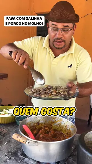 FAVA COM GALINHA E PORCO NO MOLHO!#Comida #galinha #porco #comendo