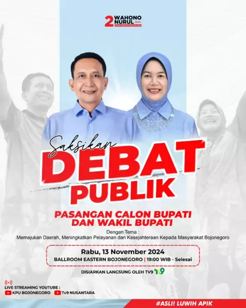 Saksikan Debat Publik Pasangan Calon Bupati Dan Wakil Bupati dengan tema: "Memajukan Daerah, Meningkatkan Pelayanan Dan Kesejahteraan Kepada Masyarakat Bojonegoro". Hari ini, Rabu,13 November 2024, pukul 19.00- selesai. Dari debat hari ini, masyarakat Bojonegoro bisa menilai siapa di antara paslon yang layak memimpin Bojonegoro. Tetap santun, jaga kerukunan dan jangan terprovokasi. #asliluwihapik #bojonegoromaju #menangmenangmenang!