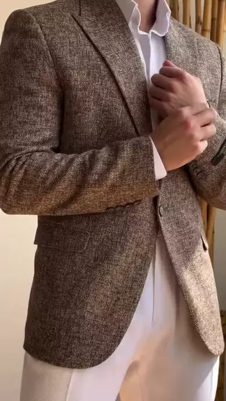 Look todo branco com o paletó do blazer marrom dando o destaque. . . #estilomasculino #blazer #bemvestidosempre