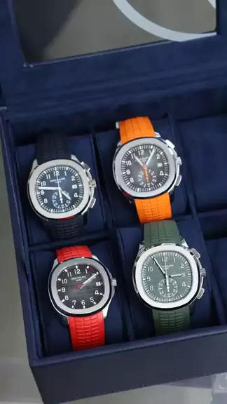 Mergulhando em escolhas com estes quatro deslumbrantes Patek Philippe Aquanauts 🔥 ⏱️Cada um exibe sua própria cor e caráter únicos 💙❤️🧡💚