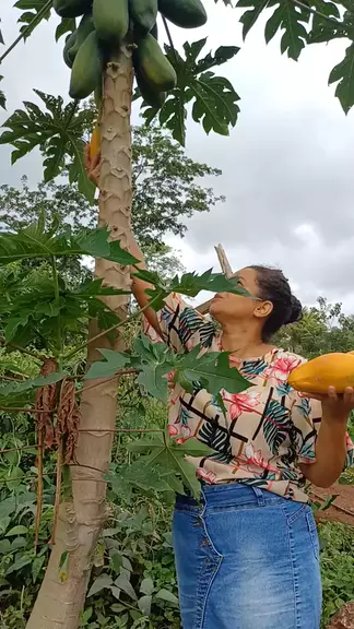 colhendo mamão maduro no pé #fruta #mamão #ostopdaroçalavouradecaf #colheita #horta