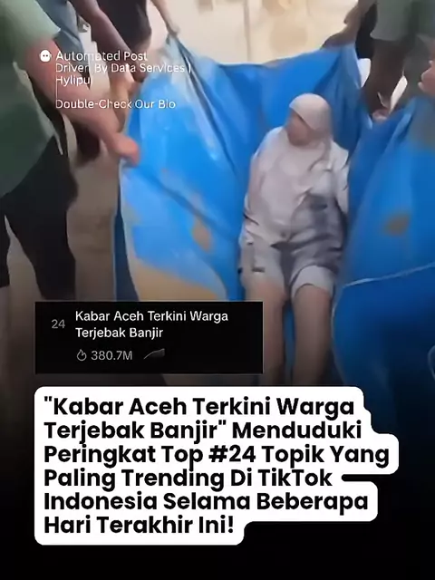 PRAY FOR ACEH, "Kabar Aceh Terkini Warga Terjebak Banjir" menempati peringkat ke-24 topik paling trending di Indonesia dalam beberapa hari terakhir, dengan total lebih dari 380 juta tayangan video secara total. Data ini diambil pada tanggal 29/11/25, pukul 15.45 WIB. Perlu diketahui bahwa informasi dapat berubah sewaktu-waktu sesuai perkembangan terkini. #acehbanjir #prayforaceh #search # #trend
