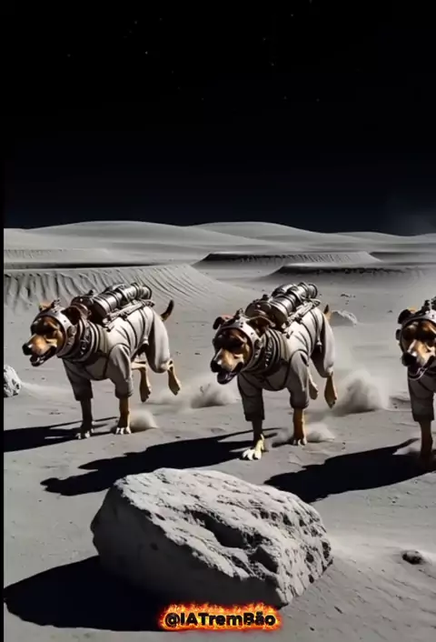 🐾🚀 Quem venceria uma corrida na Lua: o gato ou o cachorro? 🌕😂 #CorridaNaLua #GatoVsCachorro #VideoIA #Humor #Lua