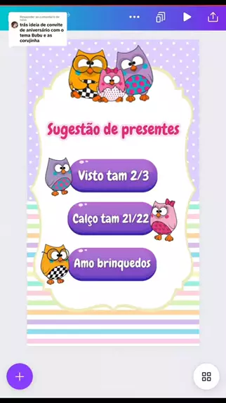 Vem comigo fazer convite interativo !! Hoje é no tema Bubu e as corujinhas 🦉✨ Peça já o seu !! WhatsApp (83) 982042988 #Edição #ÉClaroQue #convitedigital #festa #bubueascorujinhas