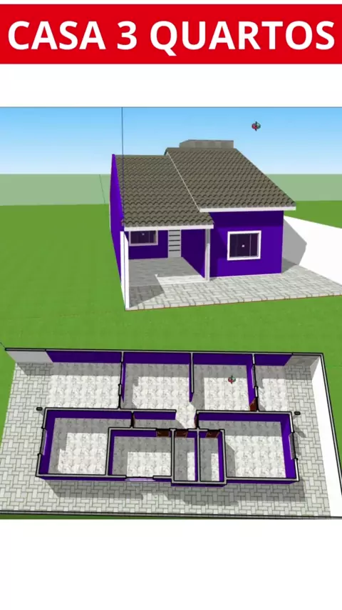 Planta de casa com 3 quartos #casa #casas #arquitetura