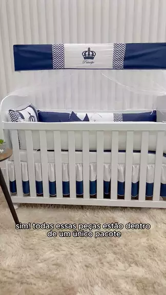 Kit protetor de berço coroa azul marinho 👑💙 Inspiração para deixar o berço do seu príncipe lindo, seguro e confortável! #kitberço #enxovaldebebe #comoMontarBerço #quartodobebê #berçocompleto