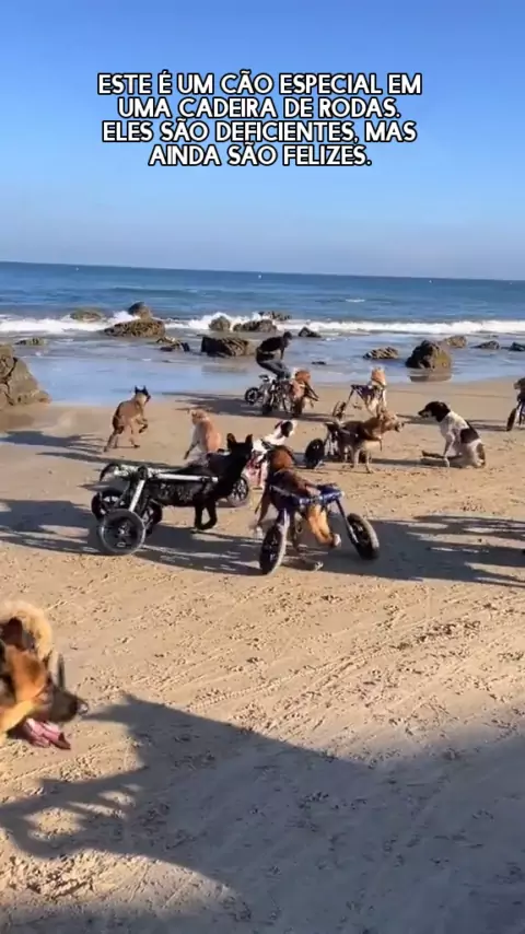 Às vezes é um cachorro em uma cadeira de rodas, mas eles ainda estão felizes.
