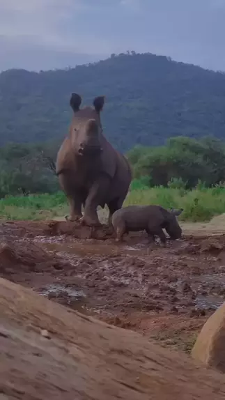 Mamãe rinoceronte com seu bebê. #rinoceronte #CrescerNaFamília #SupresaDePáscoaKwai #PáscoaDivida12K #maisgolds