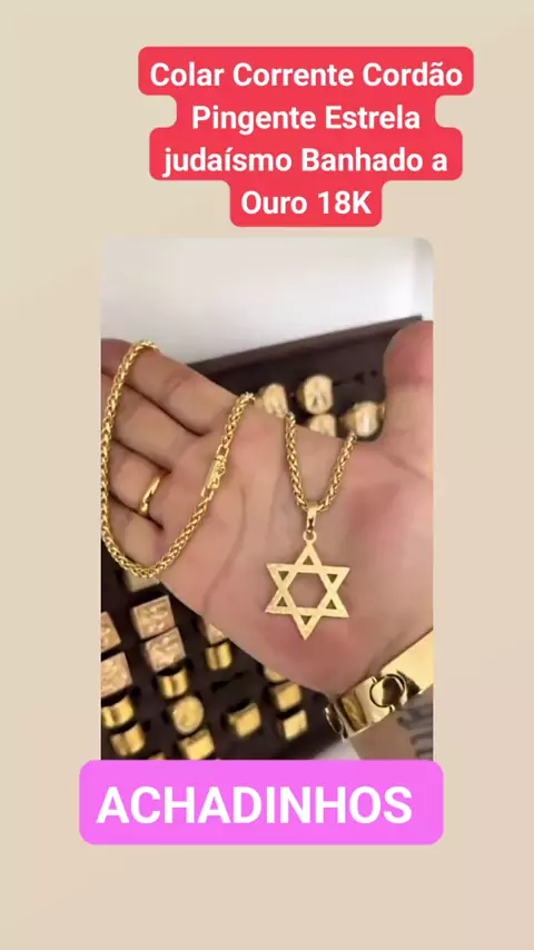 Colar Corrente Cordão Pingente Estrela judaísmo Banhado a Ouro 18K dia dos Namorados Presente