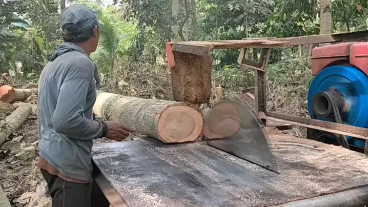 menggergaji kayu waru dengan alat tradisional #penggergajiankayu #mesinpemotongkayu # #serkelkeliling #100kerajinankayu