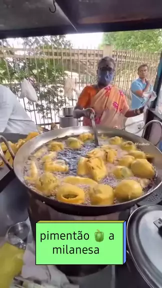 pimentão 🫑 a milanesa #StreetFood #comendo #maravilhasdocriador #cortarfrutas #pimentao