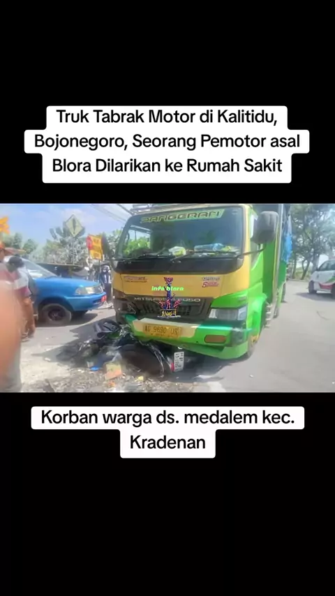 Kecelakaan lalu-lintas antara truk dan sepeda motor terjadi di Jalan Raya Bojonegoro-Cepu, turut wilayah Desa Ngujo, Kecamatan Kalitidu, Kabupaten Bojonegoro, Jawa Timur. Selasa (15/07/2025) pukul 11.00 WIB. Sepeda motor Honda Supra yang hendak belok ke kanan, ditabrak truk Mitsubishi yang berjalan dari arah belakang. Akibatnya, pengendara sepeda motor mengalami luka-luka dan dibawa ke Rumah Sakit Umum Daerah (RSUD) dr Sosodoro Djatikoesoemo Bojonegoro. Kedua kendaraan yang terlibat kecelakaan ...