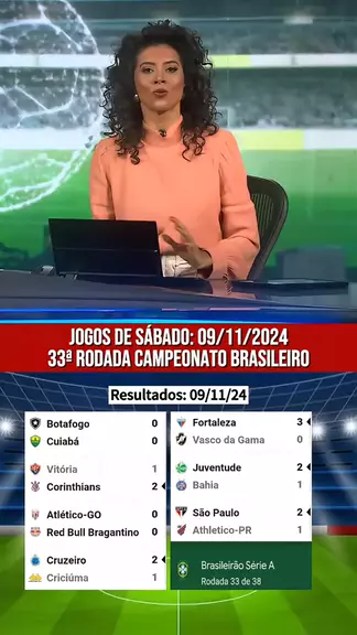 Vitória 1x2 Corinthians Cruzeiro 2x1 Criciúma Fortaleza 3x0 Vasco Juventude 2x1 Bahia São Paulo 2x1 Athlético-PR Botafogo 0x0 Cuiabá Atlético-GO 0x0 Bragantino #KwaiEsportes #Futebol #Brasileirão #CrescerNaFamília