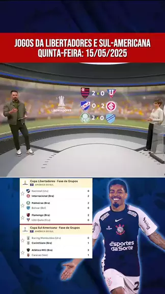 Veja os gols da Libertadores e Sul-americana desta quinta-feira (15/05): Flamengo 2x0 LDU Palmeiras 2x0 Bolivar Nacional 0x2 Internacional Racing 0x1 Corinthians Atlético-MG 3x1 Caracas #KwaiEsportes #Libertadores #Sulamericana #Flamengo #Corinthians