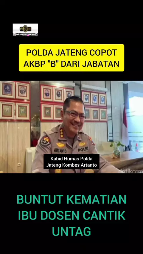 INFORMASITERKINI1.COM | Seorang Polisi Berpangkat AKBP Yang Pernah bersama Serumah dengan Almarhum DLV Dosen Untag Asal Purwokerto, Akhirnya di Copot. Klik disini Untuk Selengkapnya. #fyp #berita #infosnackvideo #infojateng