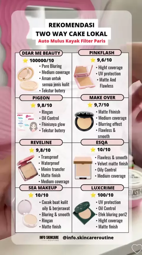 Rekomendasi two way cake lokal yang hasilnya bikin kulit halus mulus kayak filter paris 💓✨ Favv mimin yang Dear Me Beauty, Kalian Yang Mana nihh ?? Yuuk komen 🫶#twowaycake#twowaycakelokal#twowaycakeviral#faoundation#makeup#makeuptransformation