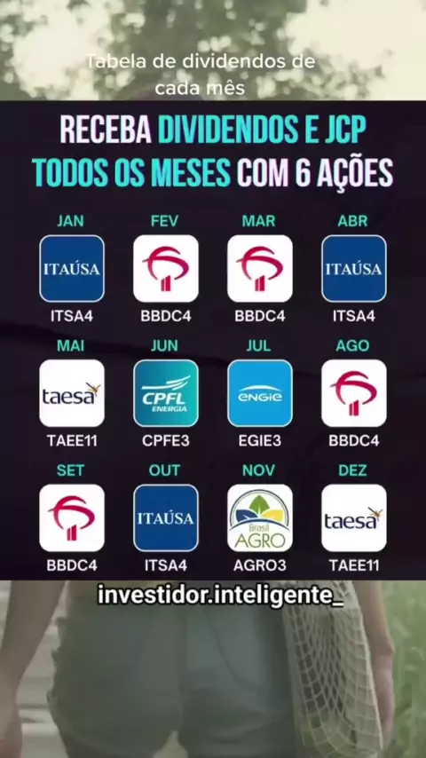 Receba dividendos todos os meses com apenas 6 ações ( empresas ). @investidor.inteligente_