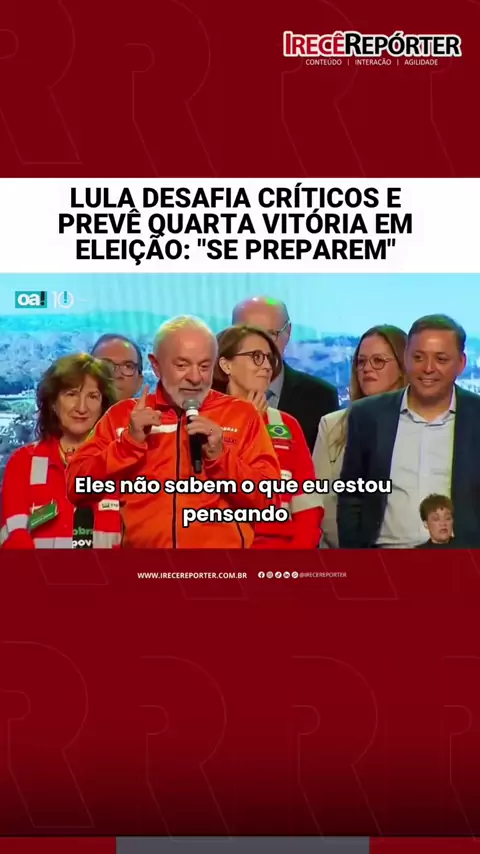 NÃO QUERO NERVOSISMO: O presidente Luiz Inácio Lula da Silva (PT) manifestou que imagina uma nova reeleição para o ano que vem e desafiou os críticos do seu governo atual. “Eles não sabem o que eu estou pensando. Se preparem porque, se tudo estiver como eu estou pensando, este país vai ter pela primeira vez um presidente eleito 4 vezes”, disse o petista nesta sexta-feira (4/7). 📢 DEIXE A SUA OPINIÃO!