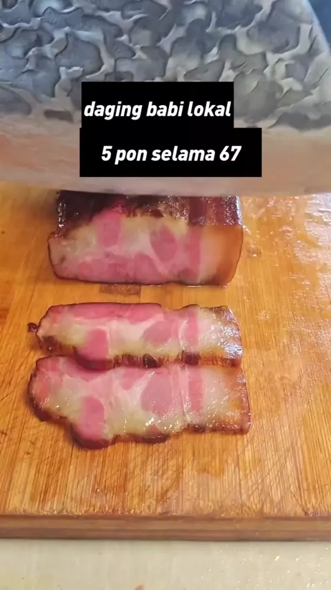 Daging babi asap. Daging asap rumah pertanian. Suvenir keluar dari gunung