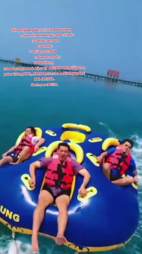 Daftar harga Paket Lengkap Pulau Tidung muara angke untuk 2 hr 1 mlm. 2 org Rp 700.000,-/org 3 org Rp 530.000,-/org 4 org Rp 500.000,-/org 5 org Rp 460.000,_/org 6 org Rp 380.000,_/org 7 org Rp 370.000,_/Org 8 org Rp 360.000,_/org 9 org Rp 350.00p,_/org 10 org Rp. 310.000/org 15 org. Rp 300.000,-/org 16- 40 org Rp 295.000,-/org 50 up Rp. 290.000,-/org 100 org Rp. 285.000,-/org Berikut Fasilitas : 1. Tiket kapal muara angke PP 2. Penginapan ful Ac+Tv+Dispenser 3. Makan 3 x 4. Sepeda santai
