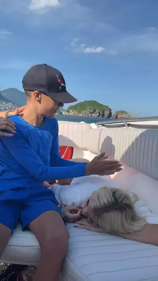 Gui fazendo massagem na Duda