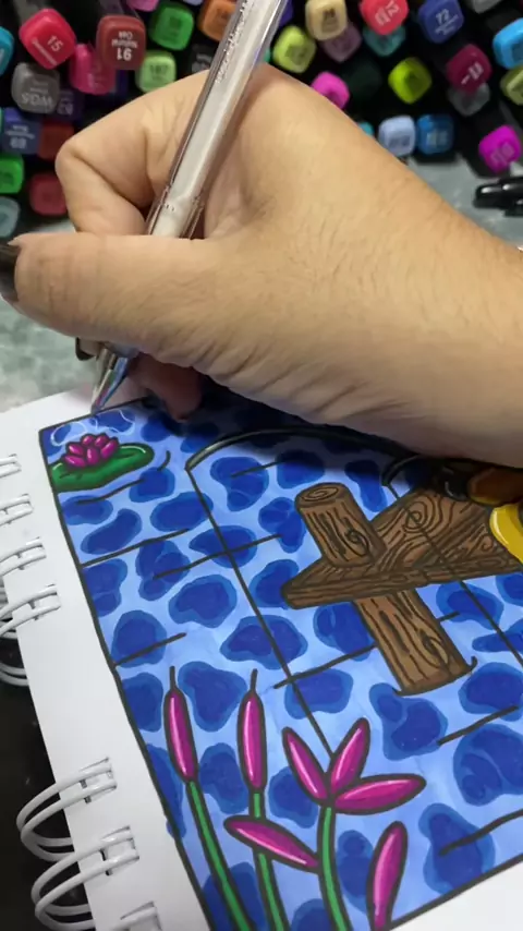 Testando efeito de água no Bobbie Goods #bobbiegoods #bobbiegoodscoloringbook #coloringbook #livrodecolorir #marcadorestouch #canetastouch