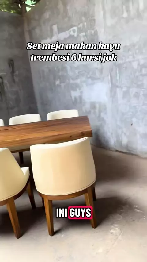 Set meja makan kayu solid dengan 6 kursi jok ukuran meja 200 cm dengsn di padu 6 kursi makan yang bagus #mejatrembesi #mejajati #mejamakanjati