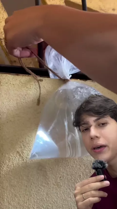 Um saco cheio de água funciona como um excelente repelente não apenas para moscas, mas contra qualquer inseto que voe. Isso acontece porque os bichinhos percebem o objeto como se ele fosse um espelho e mudam a trajetória de seu vôo. #dicas