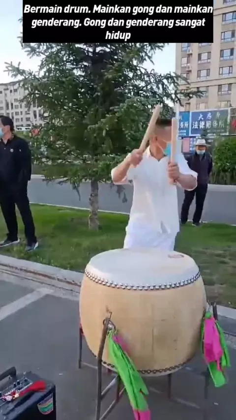 Bermain drum. Mainkan gong dan mainkan genderang. Gong dan genderang sangat hidup