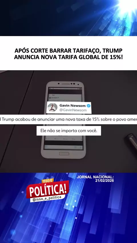 O presidente dos Estados Unidos, Donald Trump, anunciou hoje que vai aumentar a tarifa global para 15% após a Suprema Corte barrar tarifaço. Ontem, o republicano havia dito que a cobrança seria de 10%. Trecho do Jornal Nacional, da TV Globo, em 21/02/2026. #noticias #informação #política #eua #tarifas