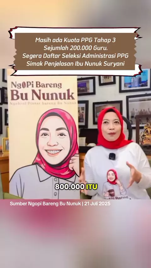 Segera Daftar Seleksi Administrasi PPG! Masih ada Kuota PPG Tahap 3 Sejumlah 200.000 Guru. Simak Penjelasan Ibu Nunuk Suryani #ppg #ppg2025 #ppgkemendikdasmen #programkemendikdasmen #pendidikanbermutuuntuksemua #direkturppg #ditjengtkpg #guruhebatindonesiakuat #guruprofesional #seleksippg2025 #daftarseleksippg #sptjm #infogtk #seleksiadmppg2025 #kuotappgtahap3 #ppggurutertentu #vervalijazahs1 #unggahsptjm