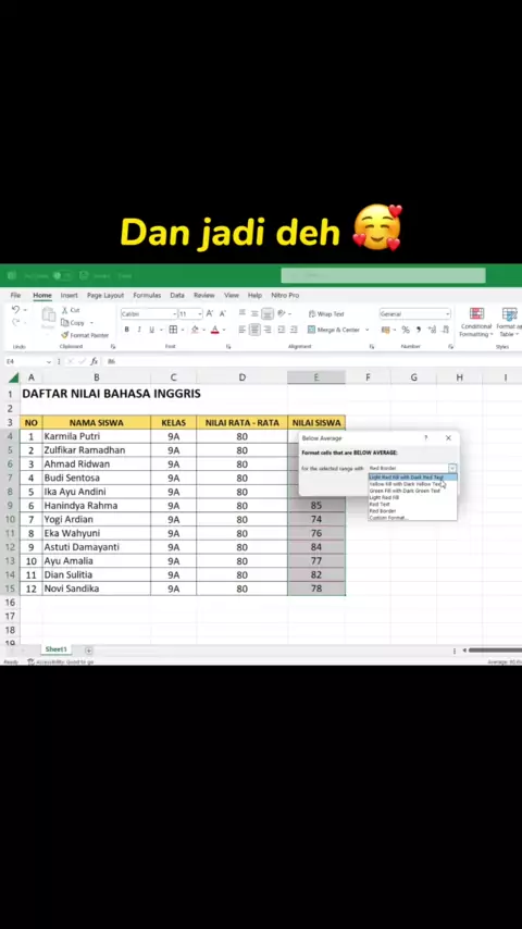 Cara cepat menandai Nilai yang ada dibawah rata - rata Menggunakan Conditional Formatting 🔥🔥🔥 Mau Kursus Komputer Online Bersertifikat ? Klik Link di Bio Yaa🥰 # # #pp #viral #viral #viralvideos #like #likes #likers #likeme #sertifikat #sertifikatresmi #kursuskomputer #kursuskomputeronline #excel #lampung #lampung #lampungpride